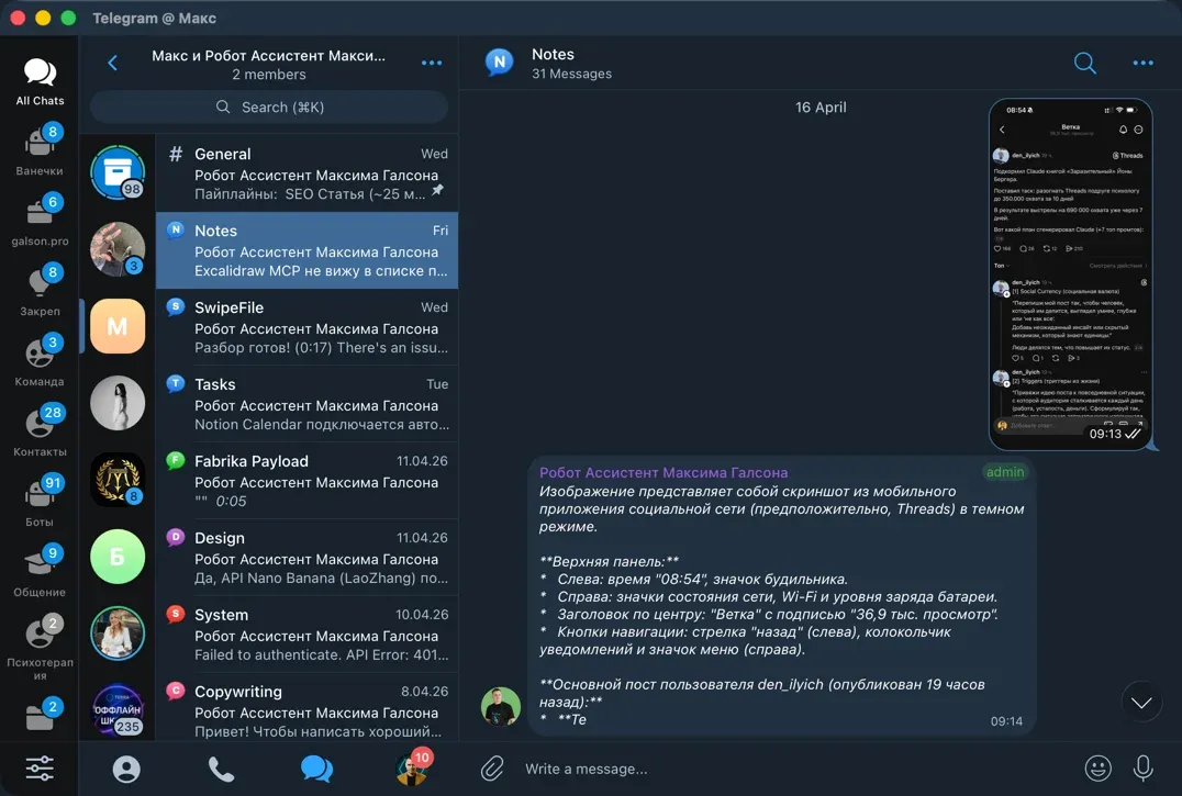 — Фото/скриншот → описывается (Gemini Vision) → сохраняется с тегом "скриншот"